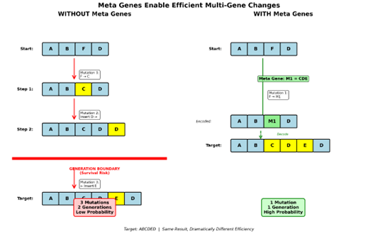 Preventing this collapse requires additional rules governing how point and insert mutations may introduce metagenes. These rules are not arbitrary constraints, but necessary conditions for maintaining a balance between abstraction and variation. It is through these constraints that MEGA’s hierarchical representation remains both expressive and stable.